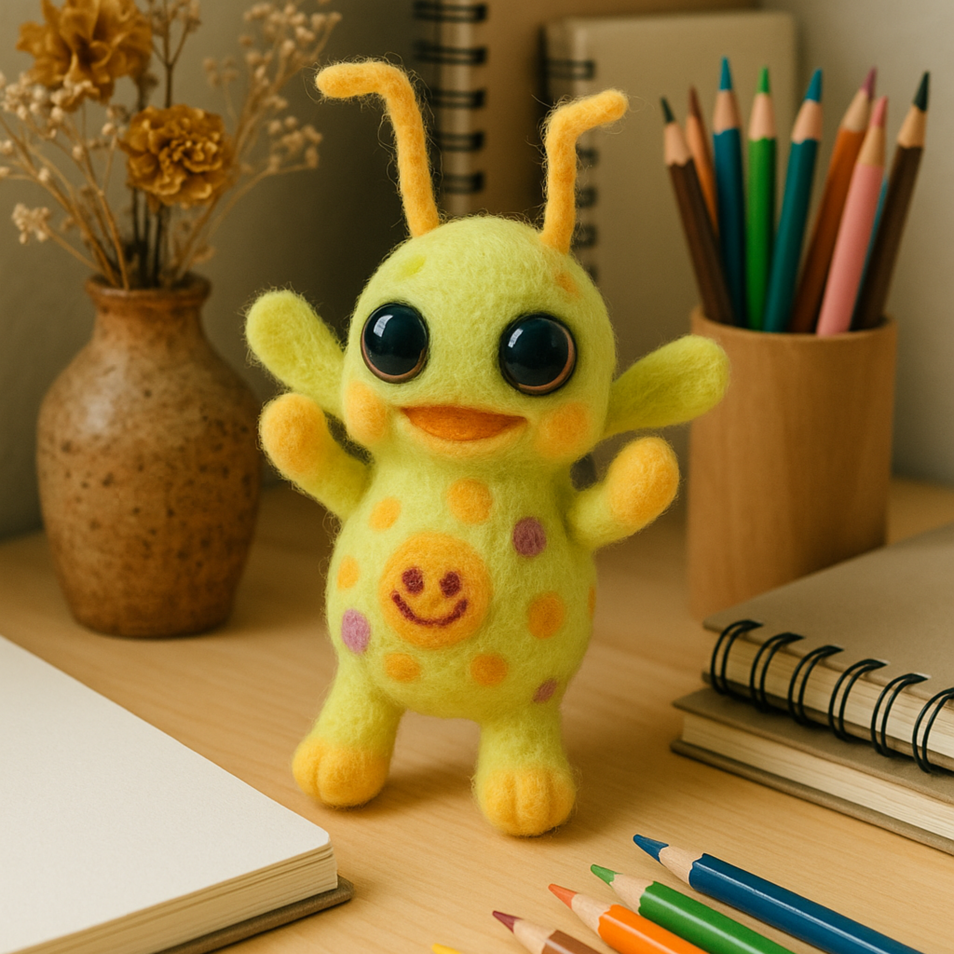 Hier kommt Frauke Fröhlich – ein quirliges kleines Filzwesen voller Lebensfreude! Ihre strahlenden Farben, das verschmitzte Lächeln und die leuchtenden Augen machen sofort gute Laune. Sie steht für Leichtigkeit, Spontanität und kleine Freuden im Alltag.